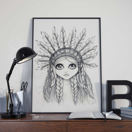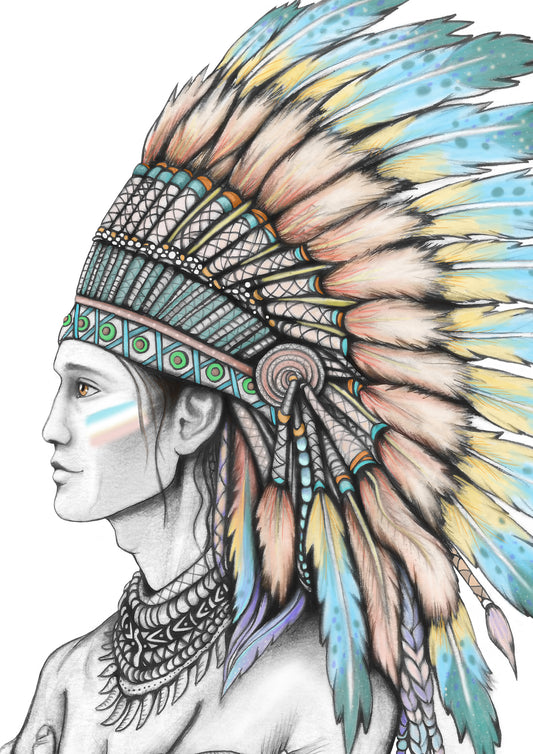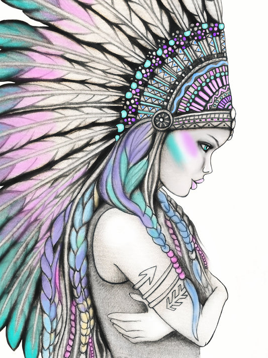 Many customers ask me where my American Indian influence has come from? My answer to this is, i just believe in strong people, hard workers, warriors that overcome diversities, strength, protection. I love being a woman and i love that i am not weak. Yes i small but i am determined. I am determined to not give up and when i feel like there is no where else to go, look at life from a different perspective. This is the passion behind every Feathered Warrior Piece i have illustrated.