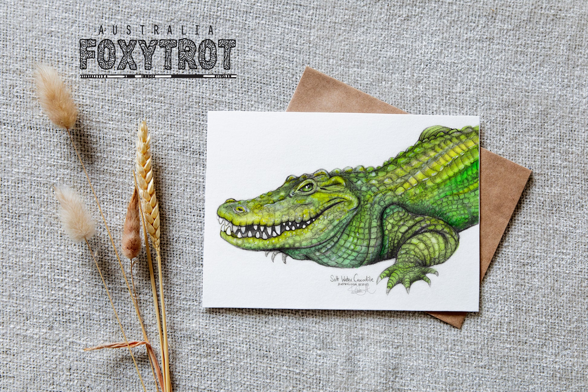 Welcome to my Toothy Crocodile illustration as a greeting card.