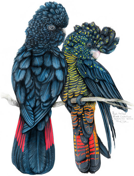 Red Tailed Black Cockatoos Tea Towel