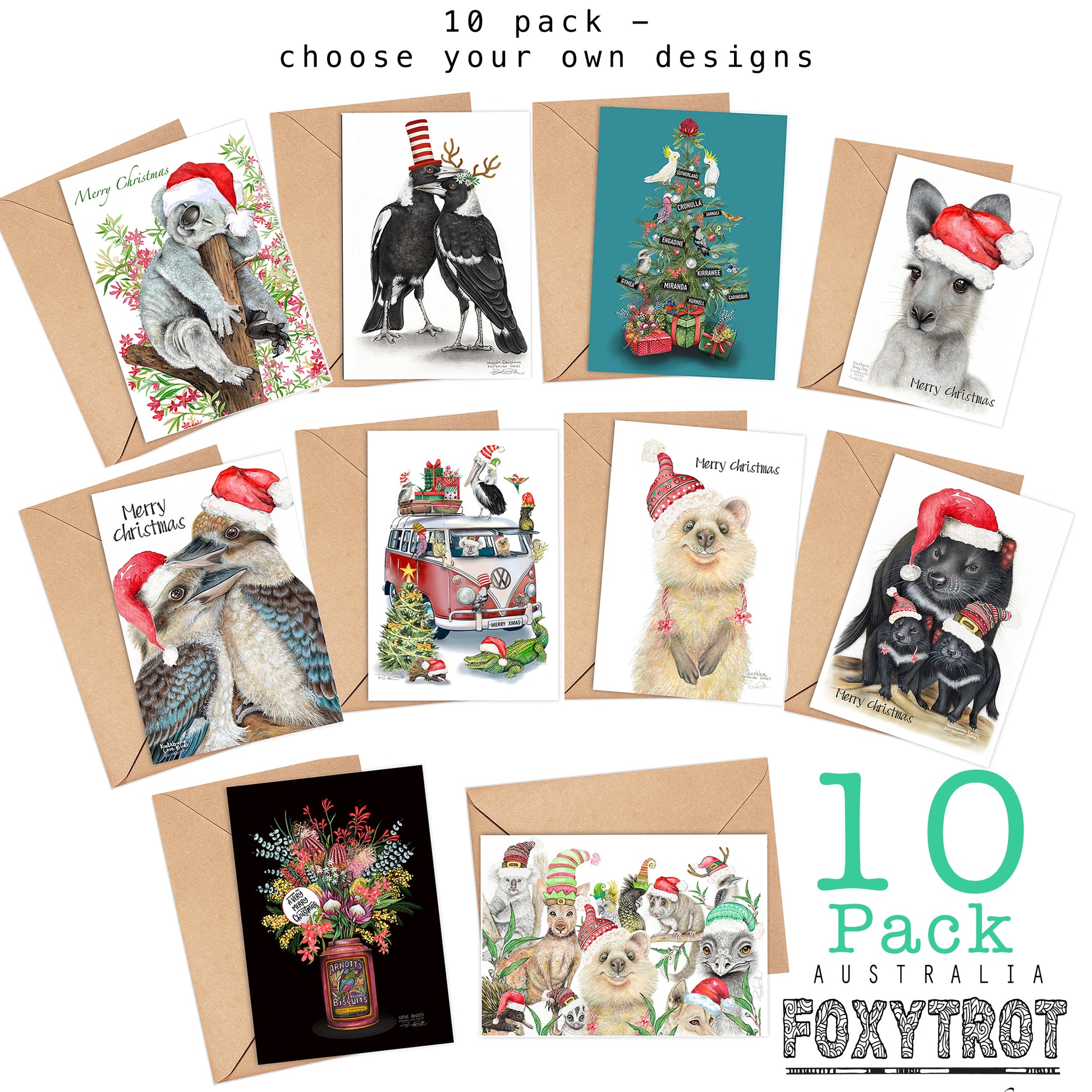 10 pack of Christmas cards - choose from 21 designs - let me know in the comment section at checkout which 10 you would like.