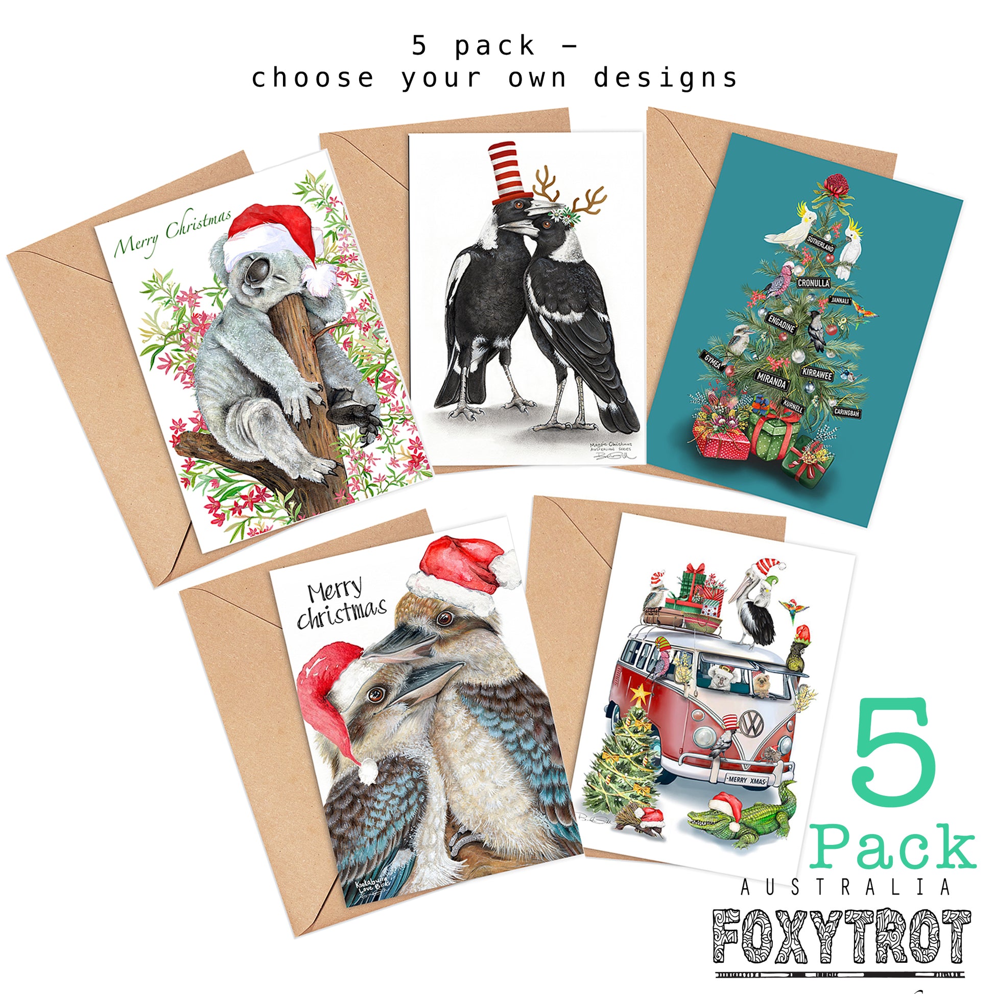 5 pack of Christmas cards - choose from 21 designs - let me know in the comment section at checkout which 5 you would like.