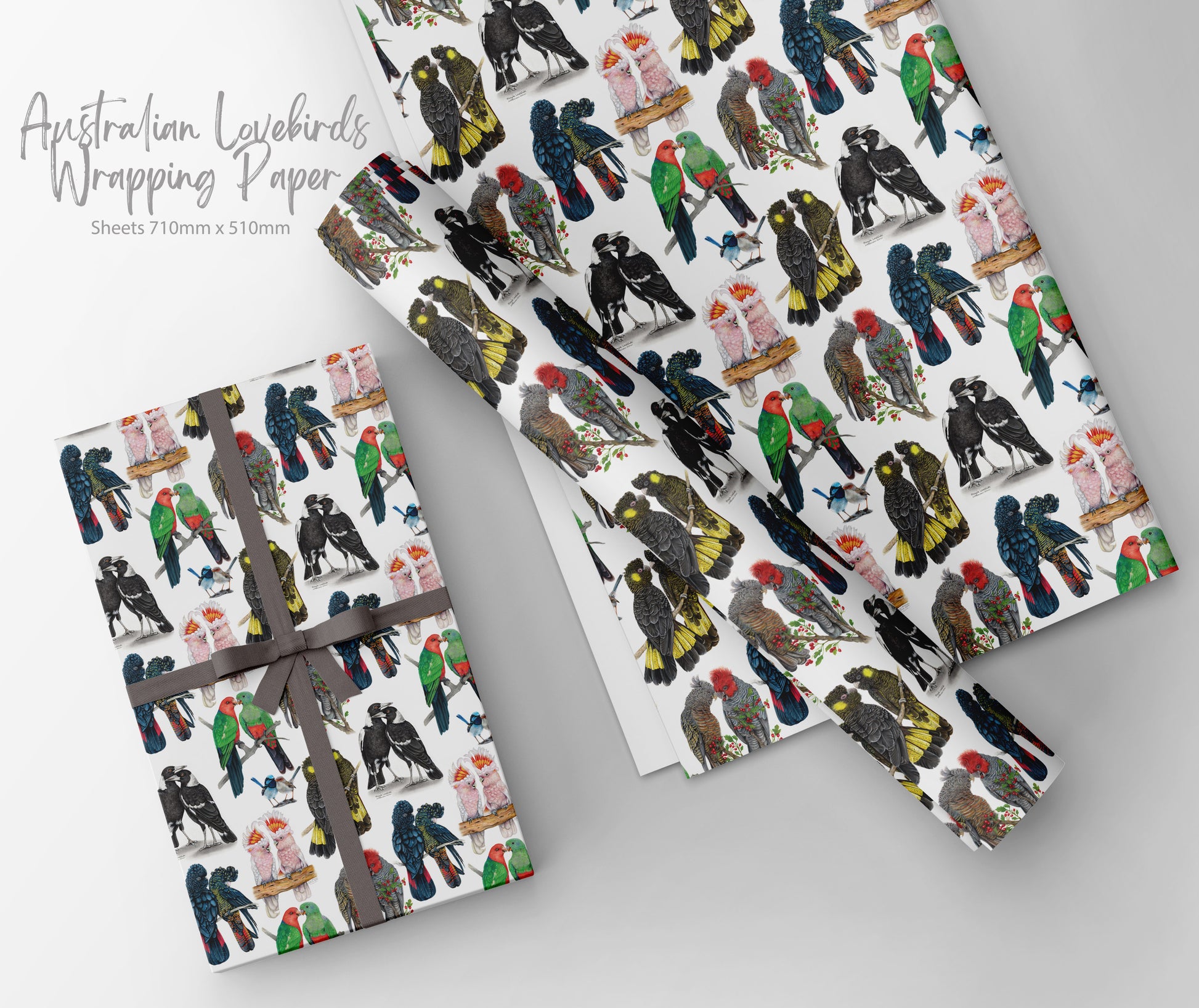 Repeating pattern created by collaborating some of my hand drawn illustrations of Aussie lovebirds.