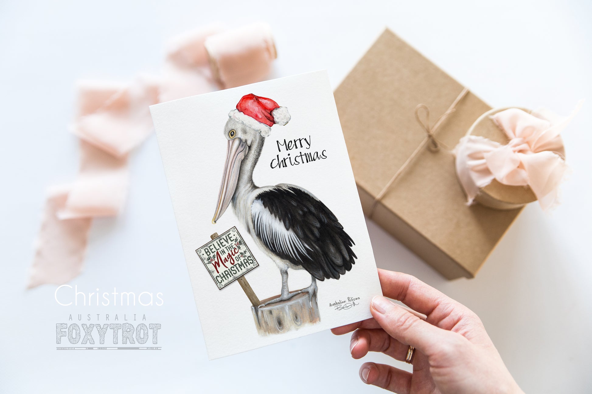 Welcome to my Aussie Pelican illustration as a Christmas Card.