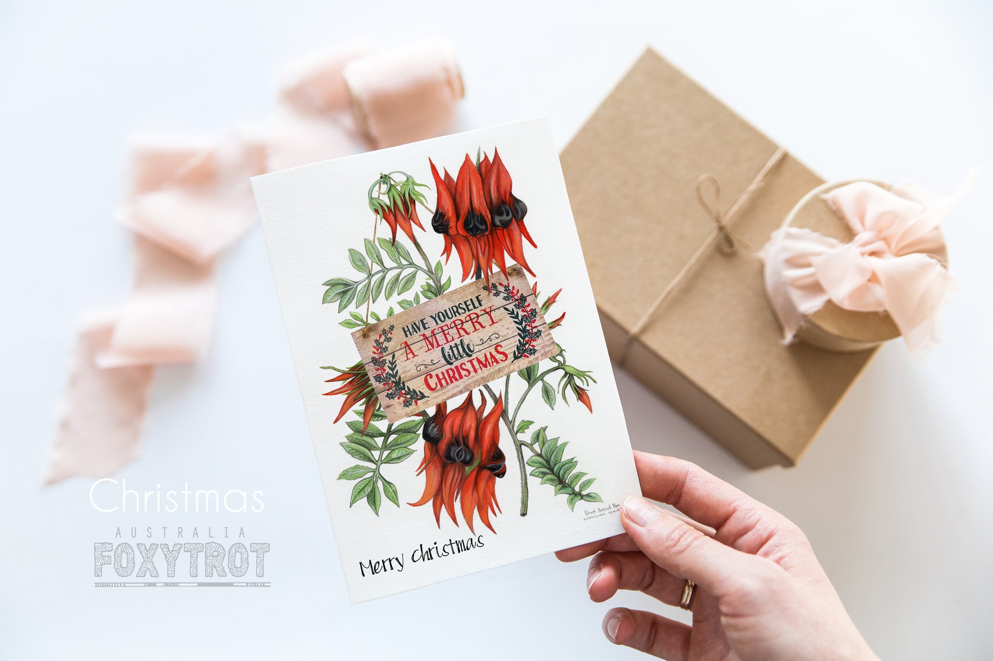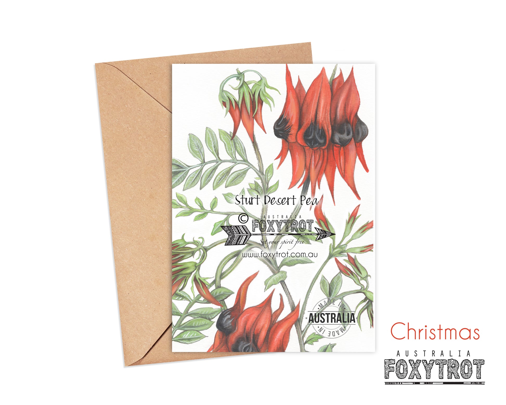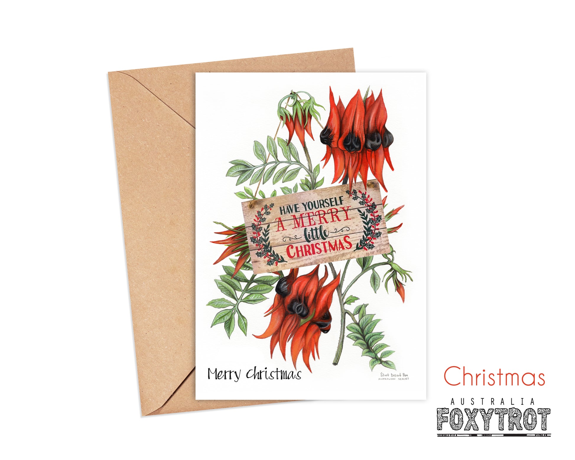 Welcome to my latest illustration of Sturt Desert Pea as a vintage Christmas Card.