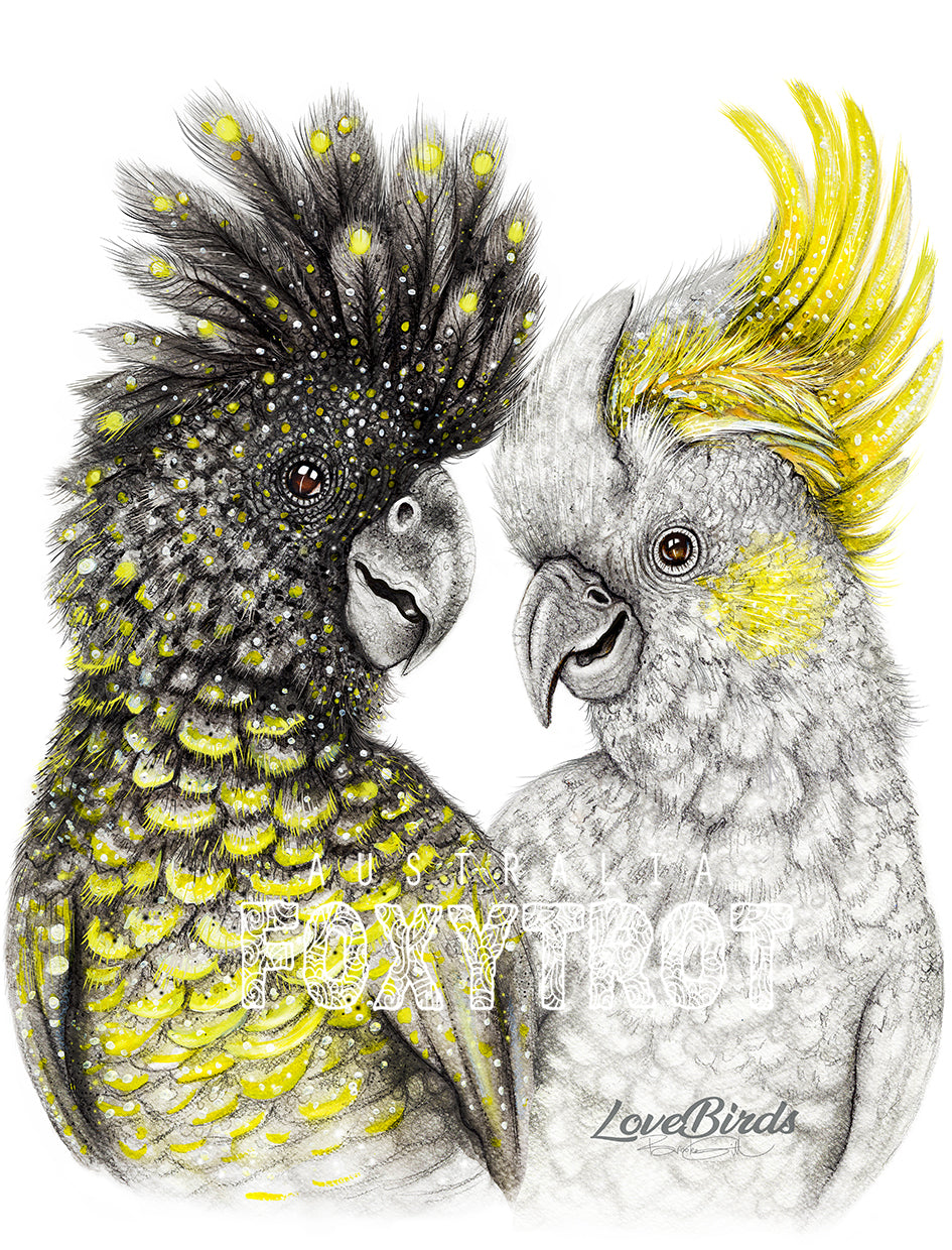 Welcome to my latest range of Certified organic cotton tea towels, featuring my original watercolour artwork of both black (red tail) and white (sulphur crested) cockatoos.