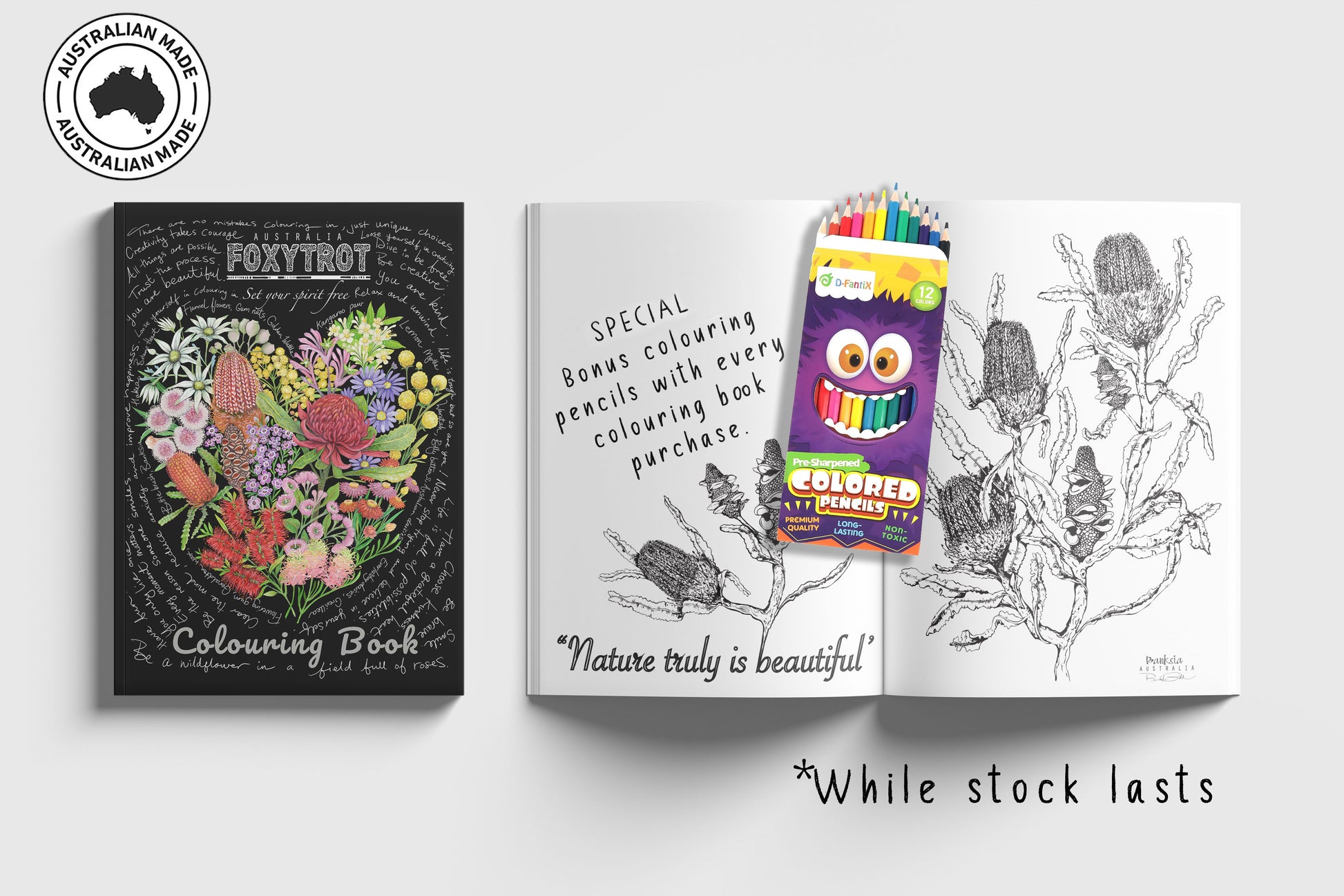 Receive a bonus set of colouring pencils with every colouring book purchased. (while stock lasts)