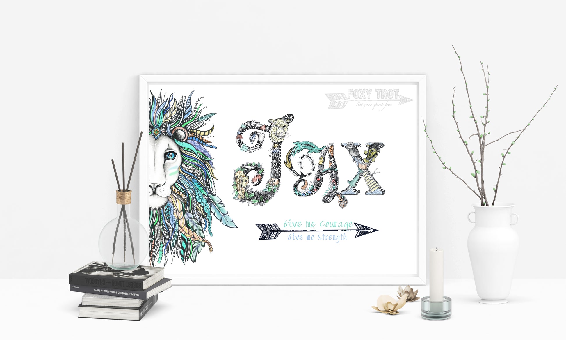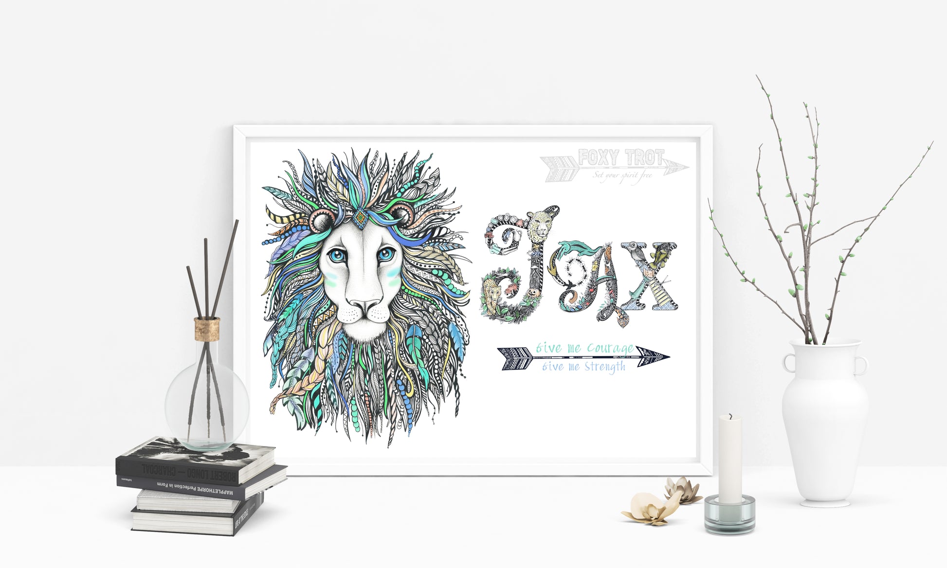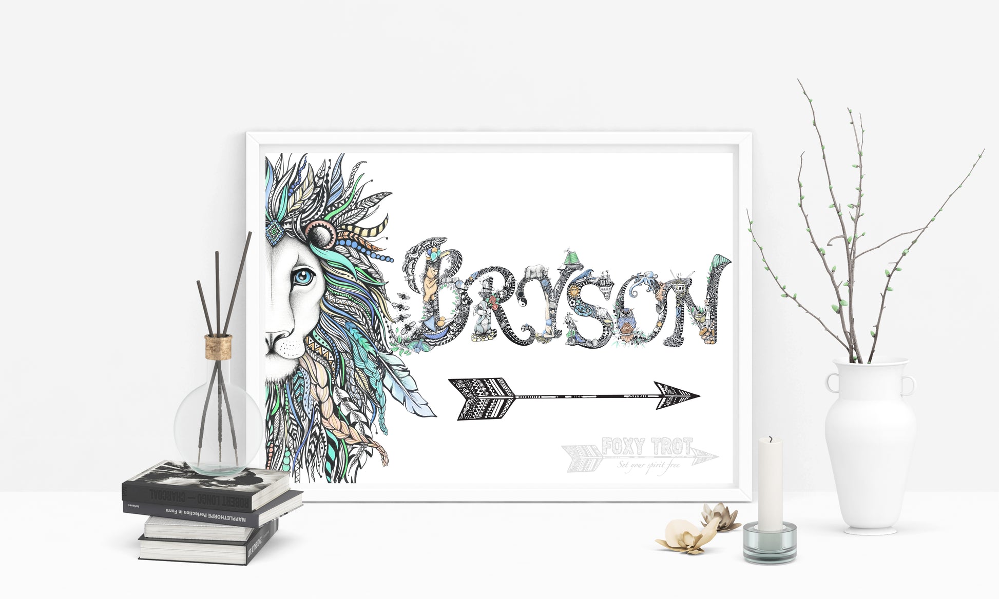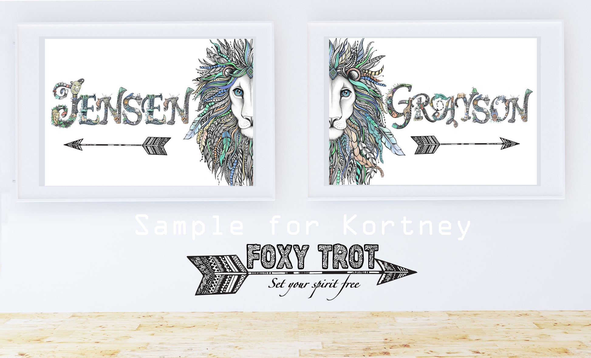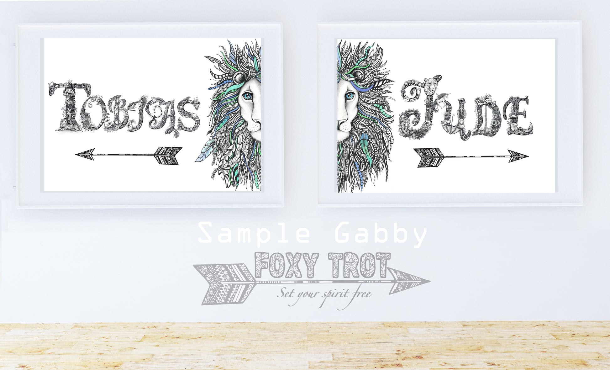 Here are some previous samples for my Lion. You might like to have just half of his face, or the whole face. Or perhaps you share a room or there is twins and i can incorporate 2 names using half on one side, the other half on the other .....