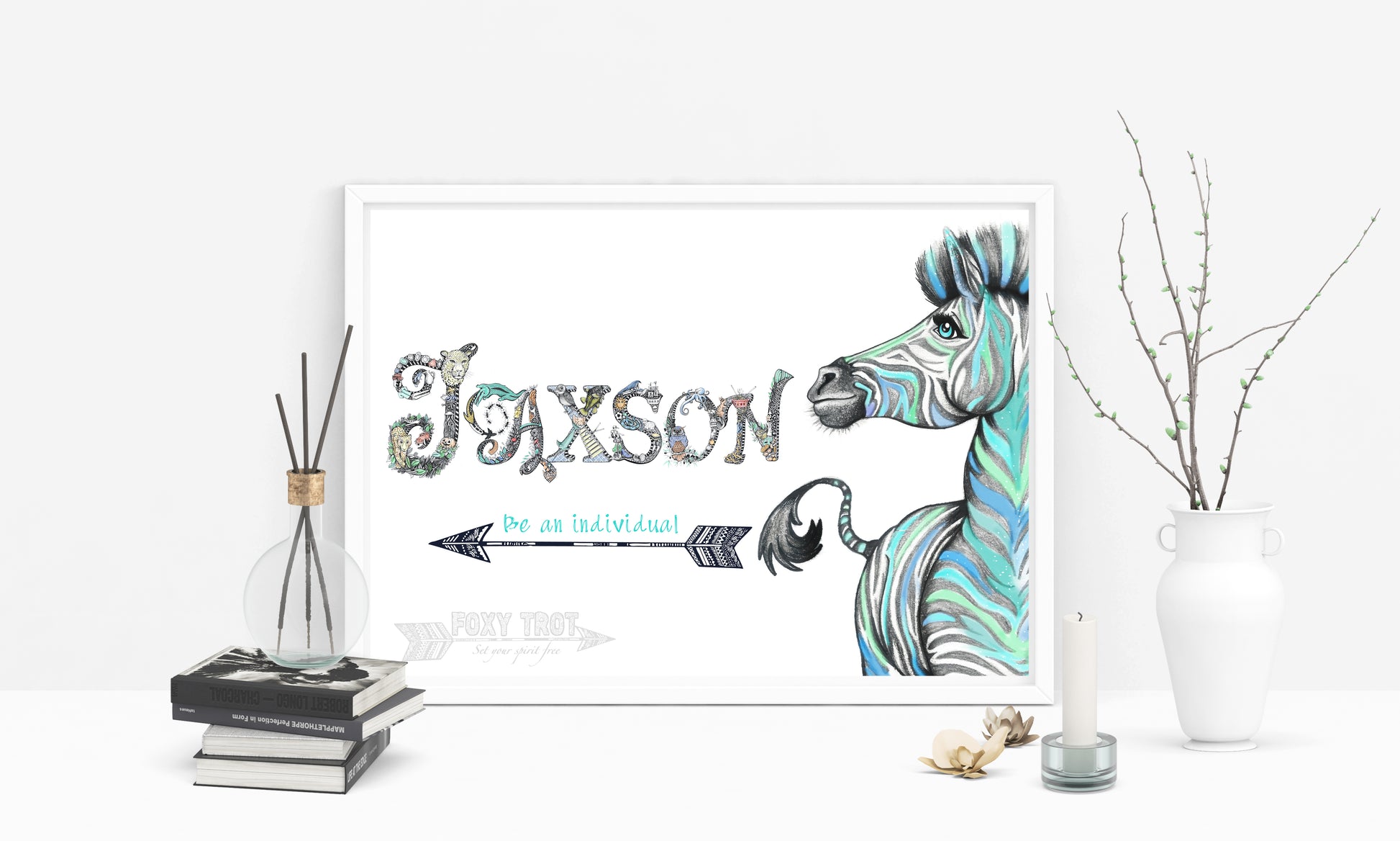 Here are some previous names I have created using my awesome Zebra illustration (I can do boy or girls names to this illustration)