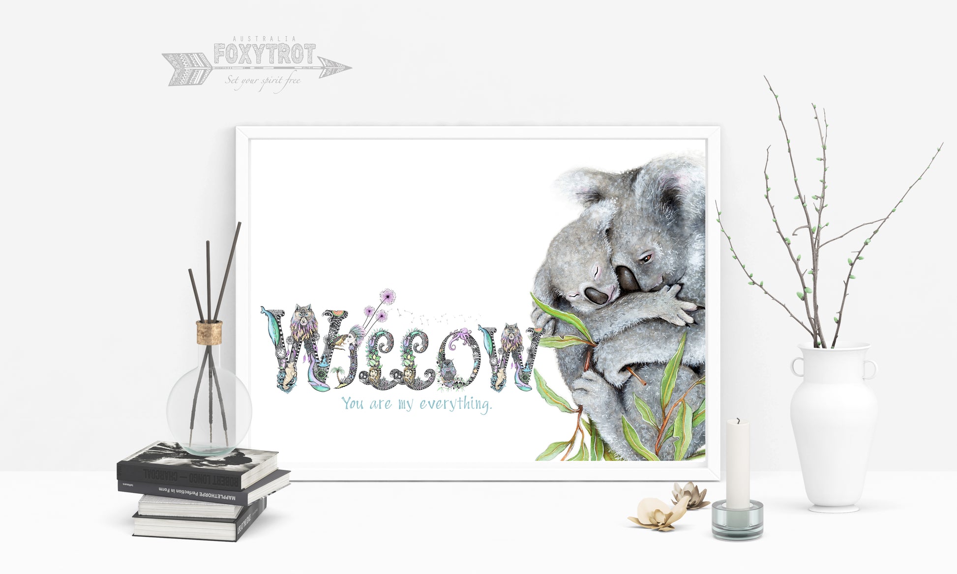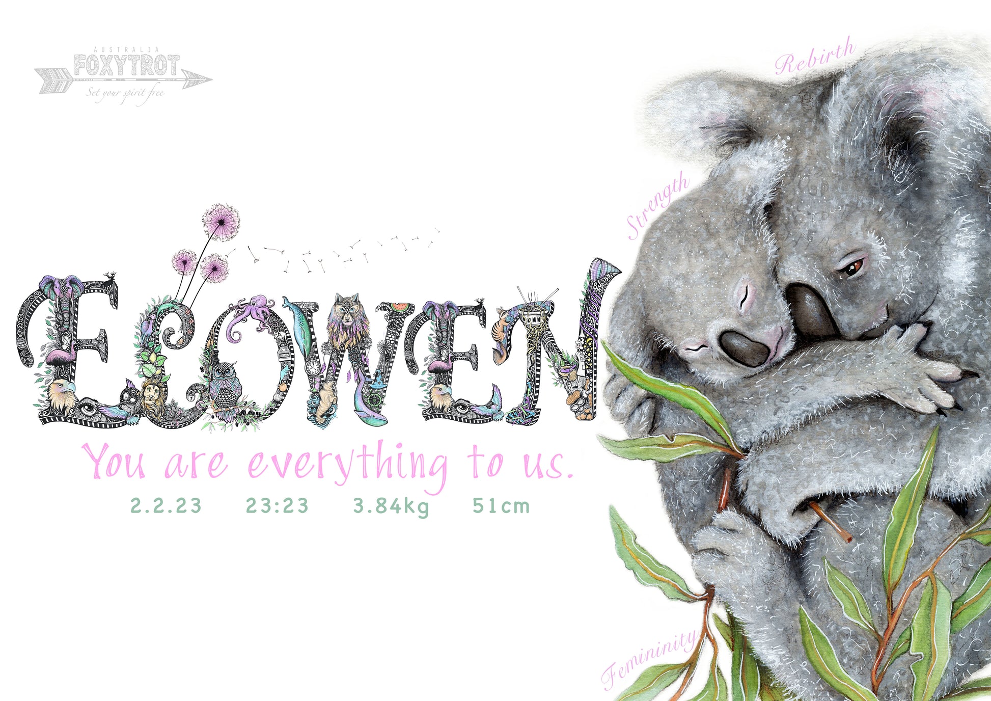 My gorgeous You are my everything Koala illustration paired with any custom name looks truely stunning.