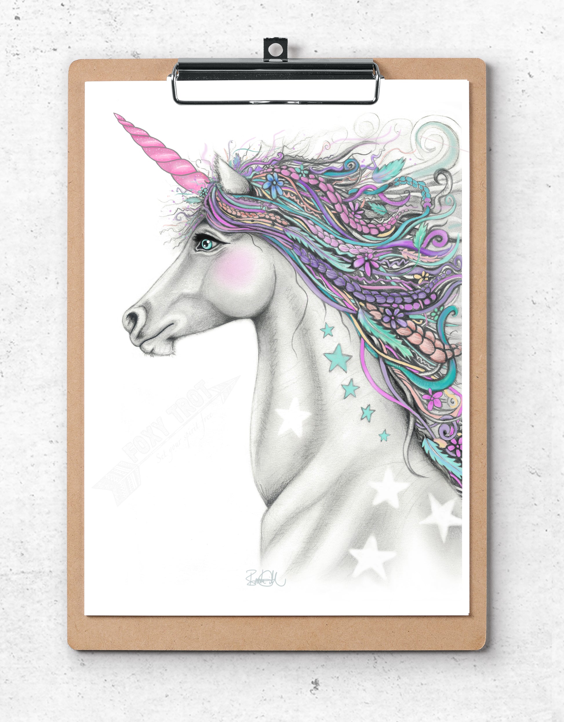I have two Unicorn illustrations. Well to tell the truth this one was actually first drawn as a horse (no horn). Many request came through to make it a unicorn. So viola.