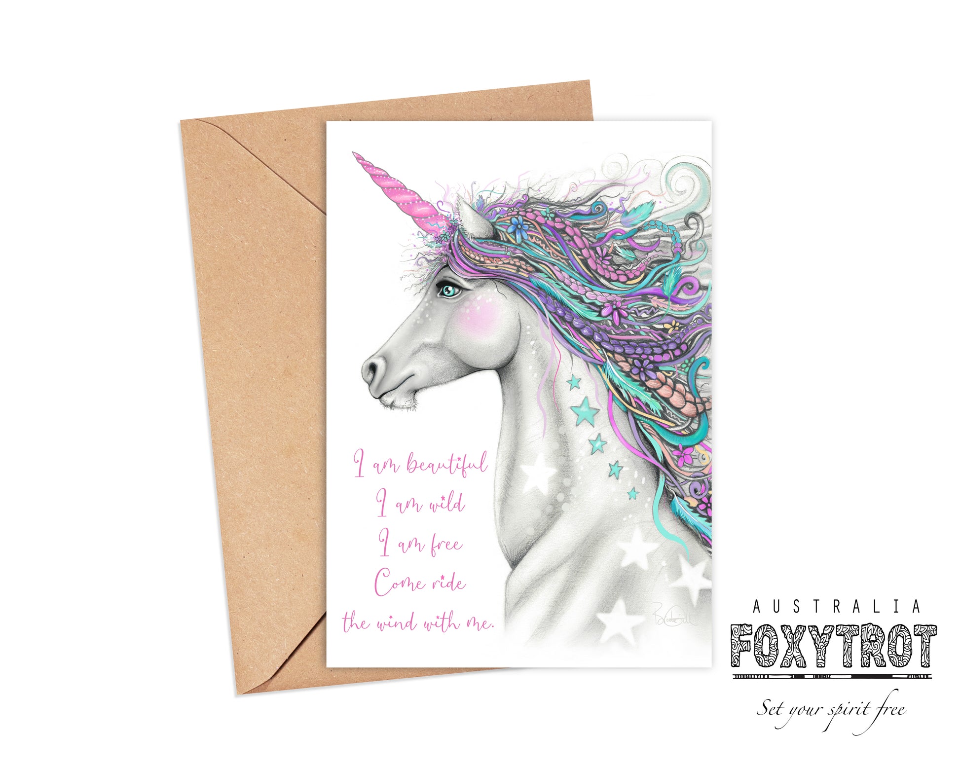Welcome to my free spirited unicorn illustration card.
