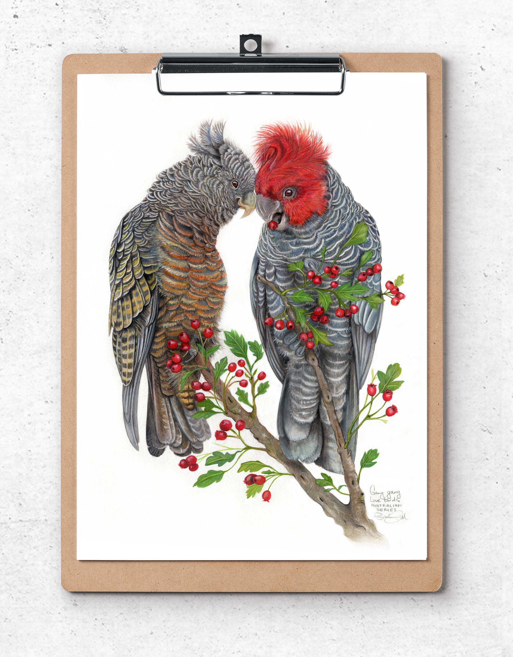 Mostly found in South-east Australia. Eating their way through eucalypt seeds, insect larvae, berries, nuts and fruits of an introduced species - Hawthorne Berry (which i so stunningly illustrated alongside my Gang Gangs!).