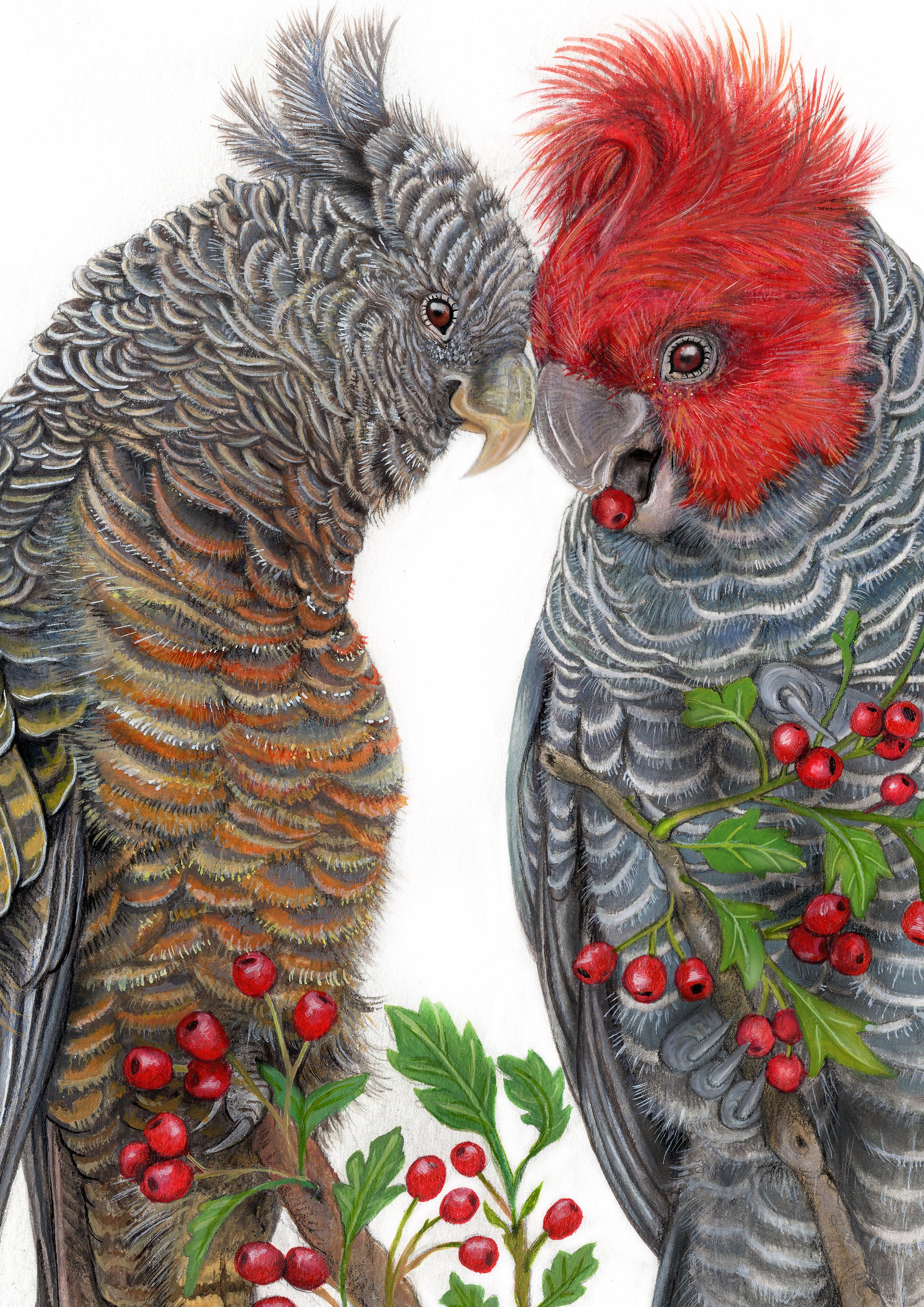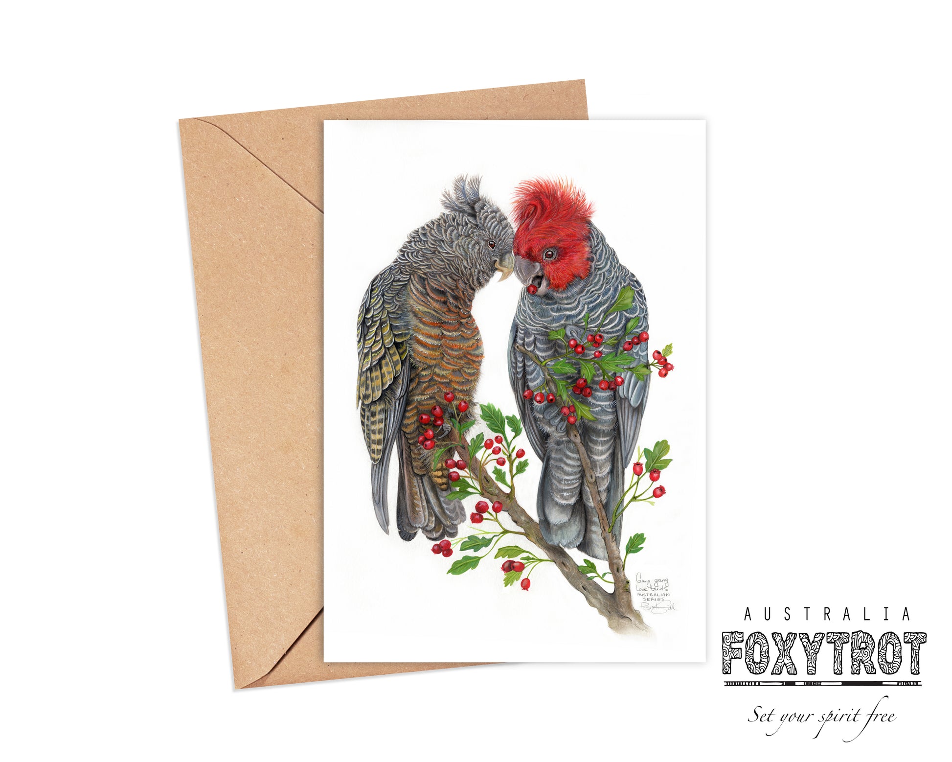 Welcome to my Gang Gang Lovebirds illustration as a greeting card.