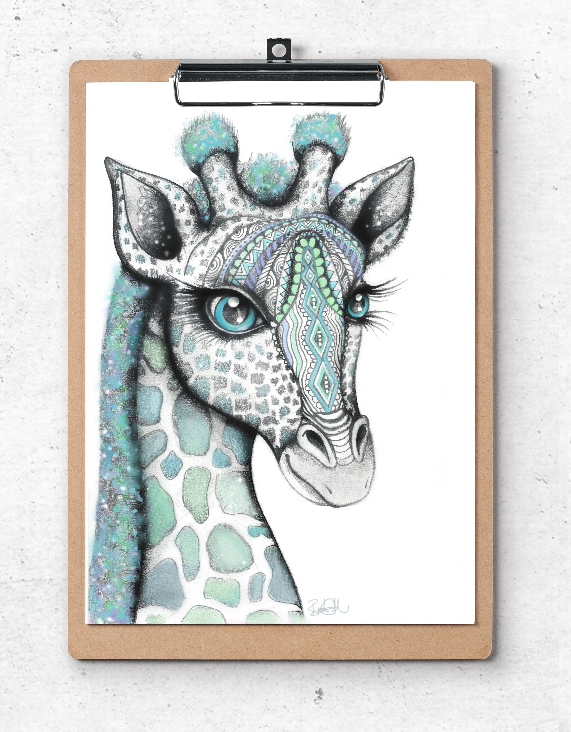 My Giraffe is part of an African series, other drawings include my Spunky Zebra, Lion, Rhino, Cheetah & Elephant.
