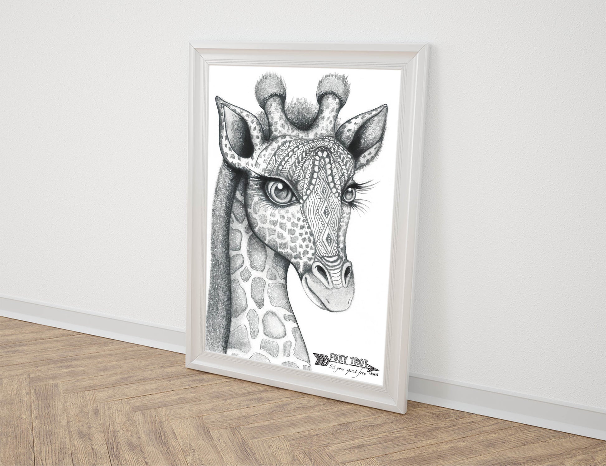 My Giraffe is part of an African series, other drawings include my Spunky Zebra, Lion, Rhino, Cheetah & Elephant.