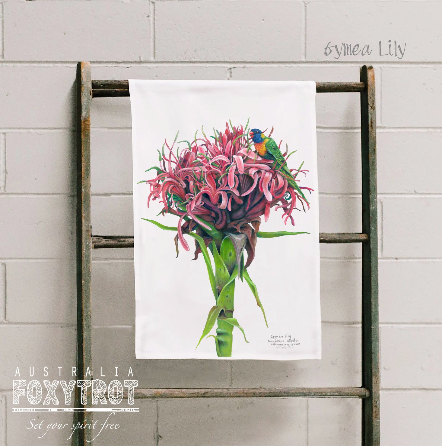 Welcome to my latest range of Certified organic cotton tea towels, featuring my original watercolour artwork of a native Gymea Lily.