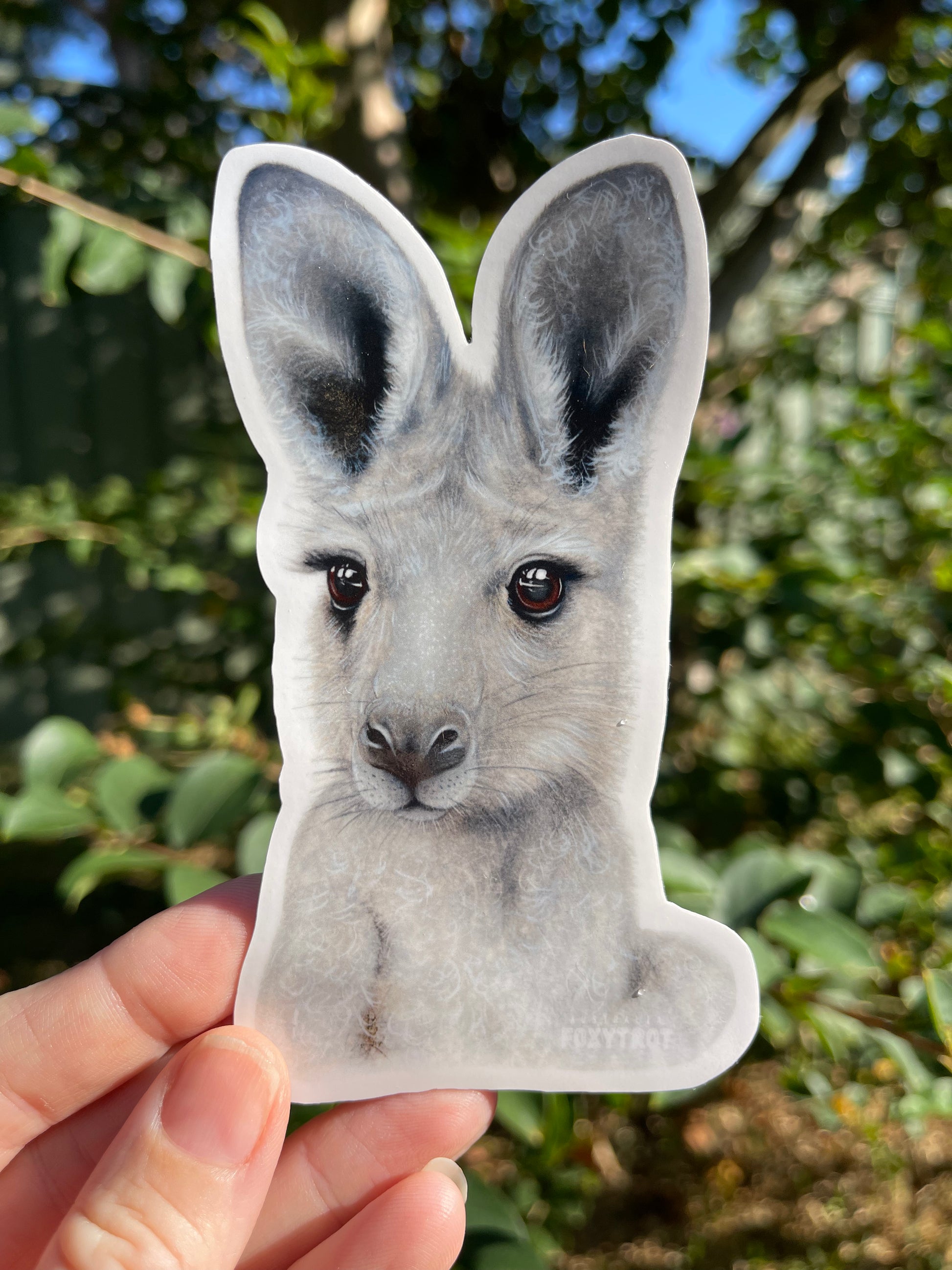 Eastern Grey Joey sticker measures 12.5cm height by 7.5cm width.
