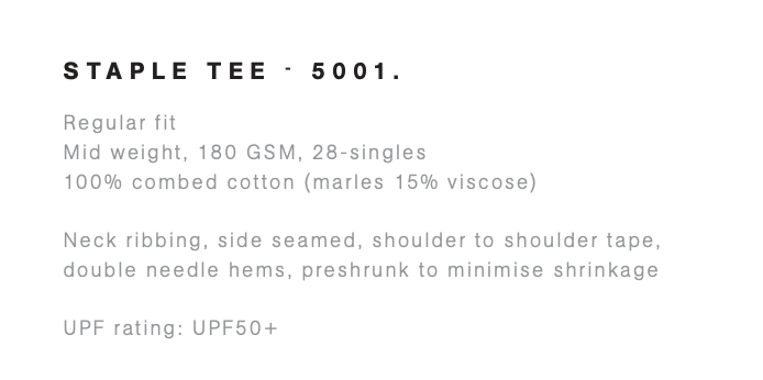 Neck ribbing, side seamed, shoulder to shoulder tape, double needle hems, preshrunk to minimise shrinkage.