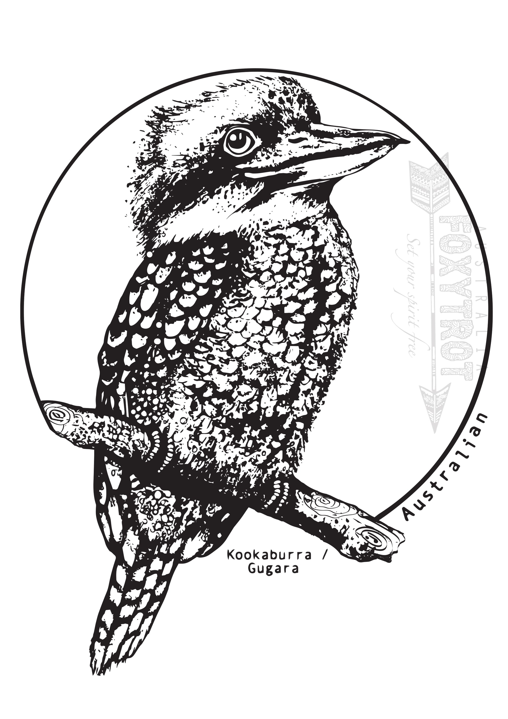 I'm lucky enough to of been born, grow up and still currently live on Dharawal land, so I wanted to pay my respect and add the Dharawal name for Kookaburra to my design.
