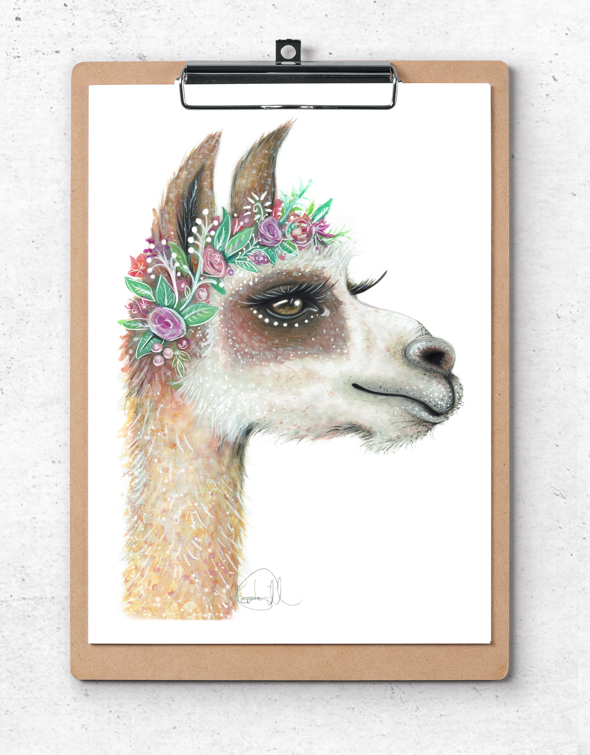 Welcome to Lola the Llama, originally drawn for a darling market friend of mine. This is her real life Llama that comes to the markets with her farmyard animals. Lola is real sweetheart and I think I captured her cute little hairs on her chin just perfectly!!!!
