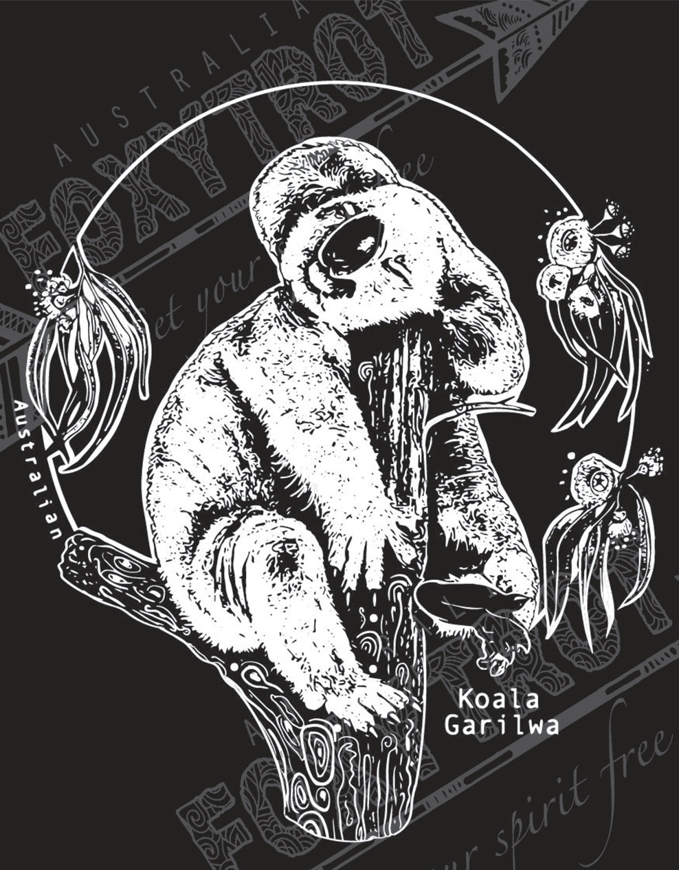 I'm lucky enough to of been born, grow up and still currently live on Dharawal land, so I wanted to pay my respect and add the Dharawal name for Koala to my design.