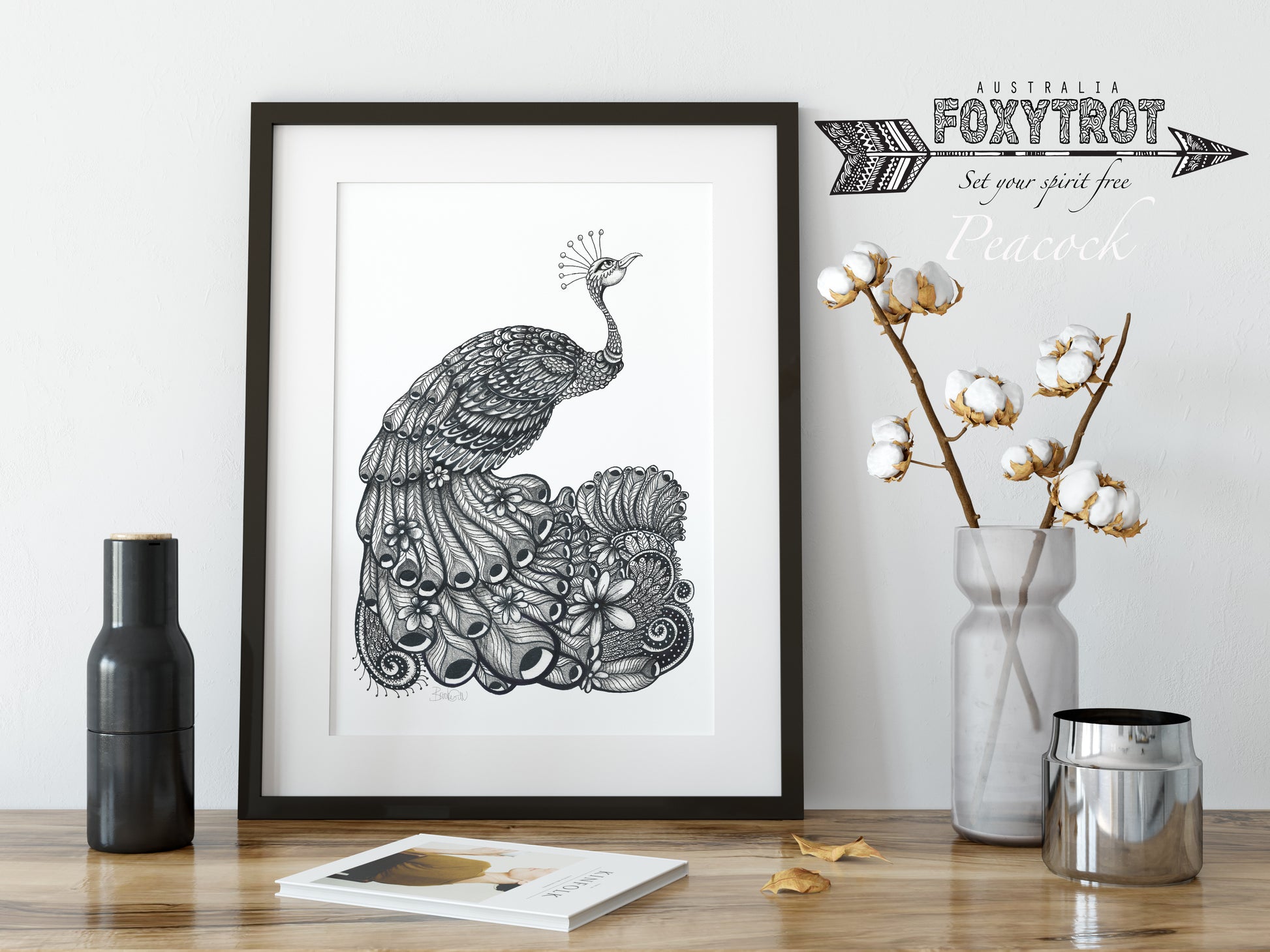 Using only pencil and Artline Ink Pens." The Peacock is a symbol of integrity and the beauty we can achieve when we show our true colours. "