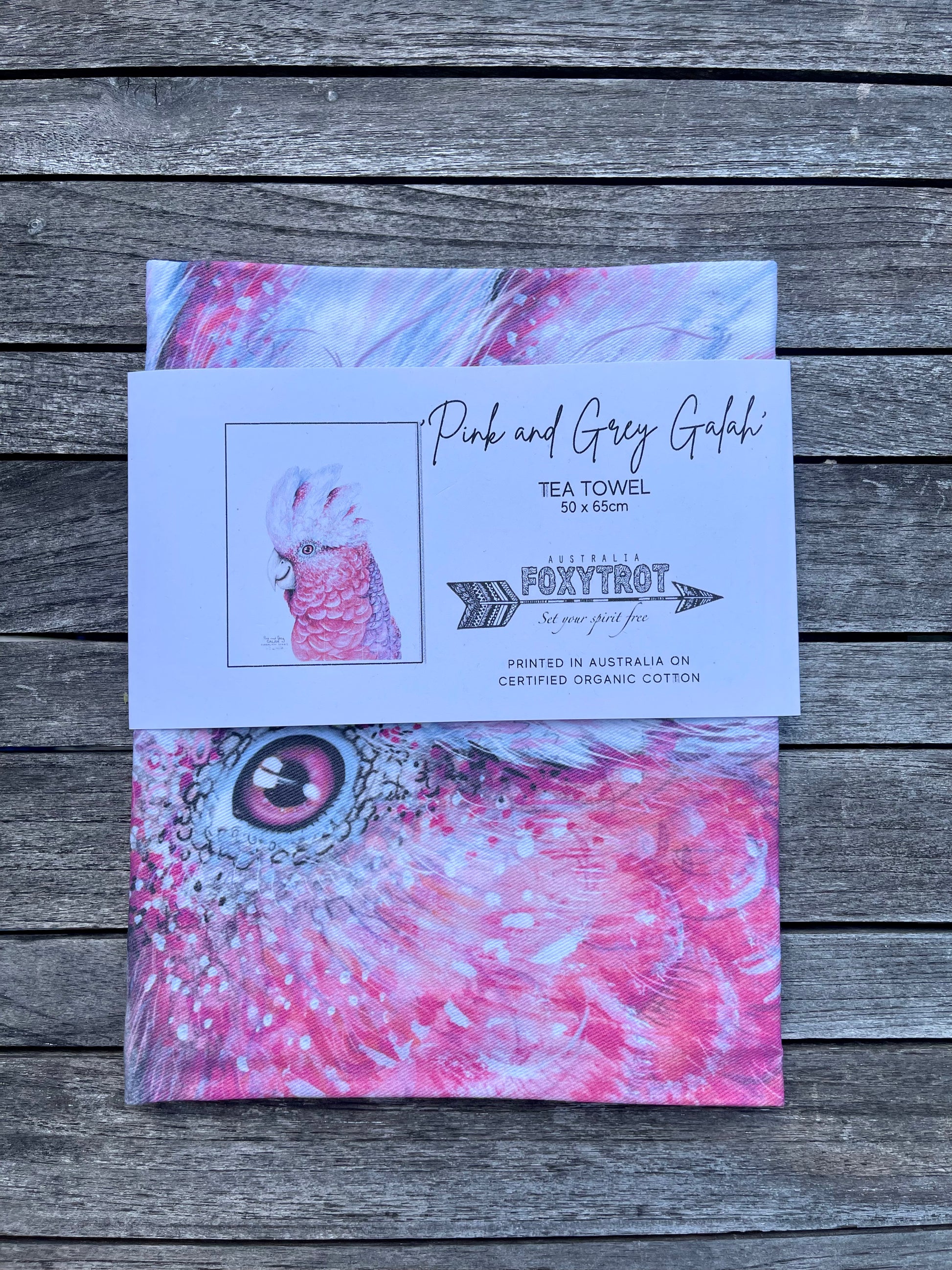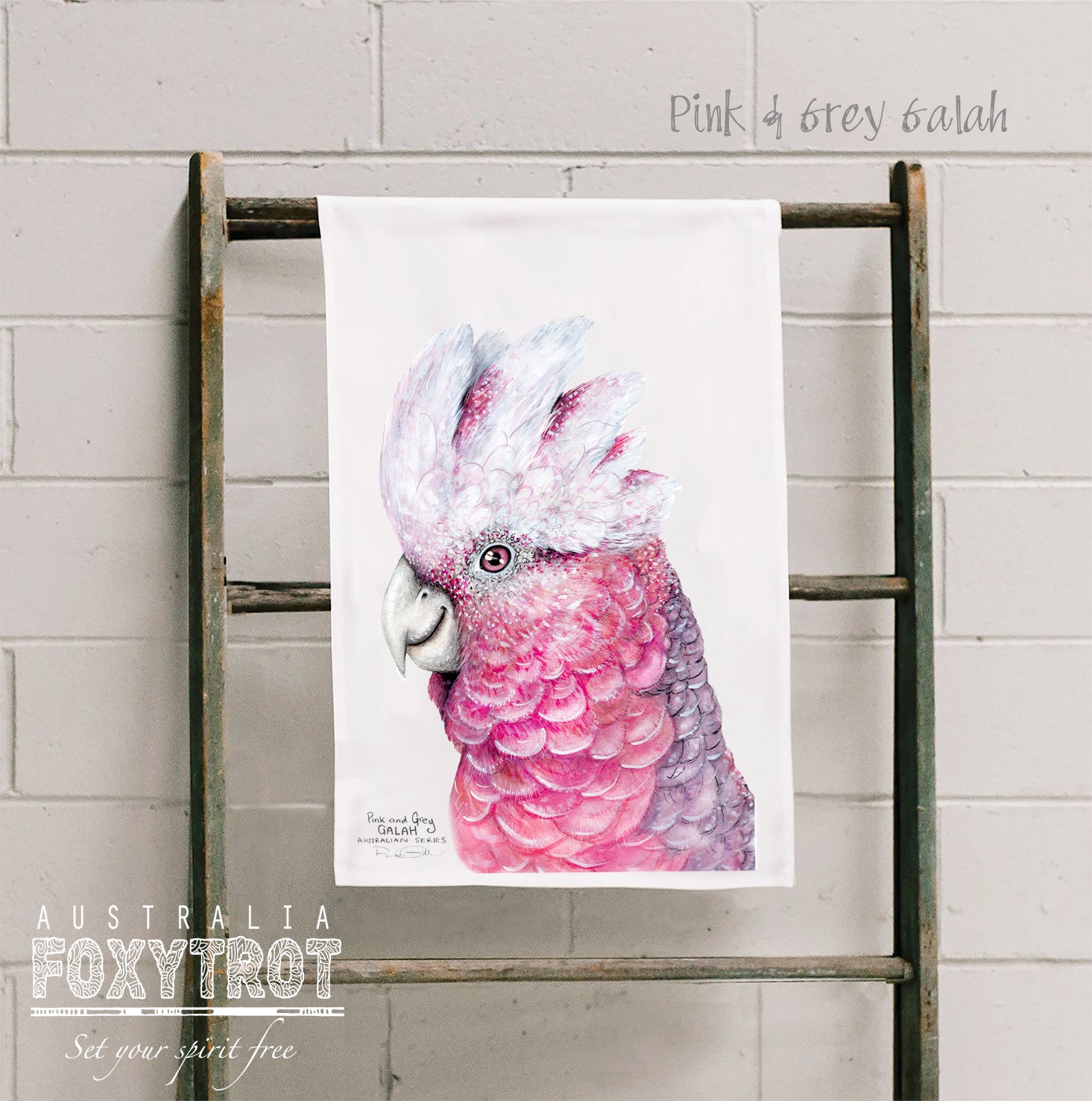 Welcome to my latest range of Certified Organic cotton tea towels, featuring my original watercolour artwork of an iconic Pink Galah.