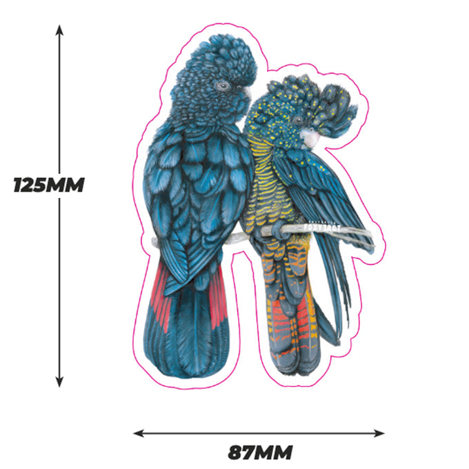 Red Tailed Black Cockatoo sticker measures 12.5cm height by 8.7cm width.