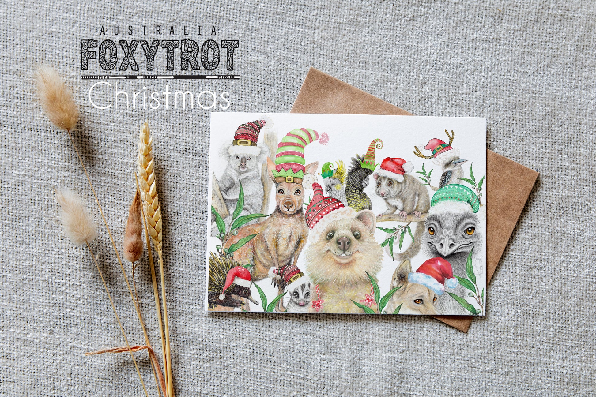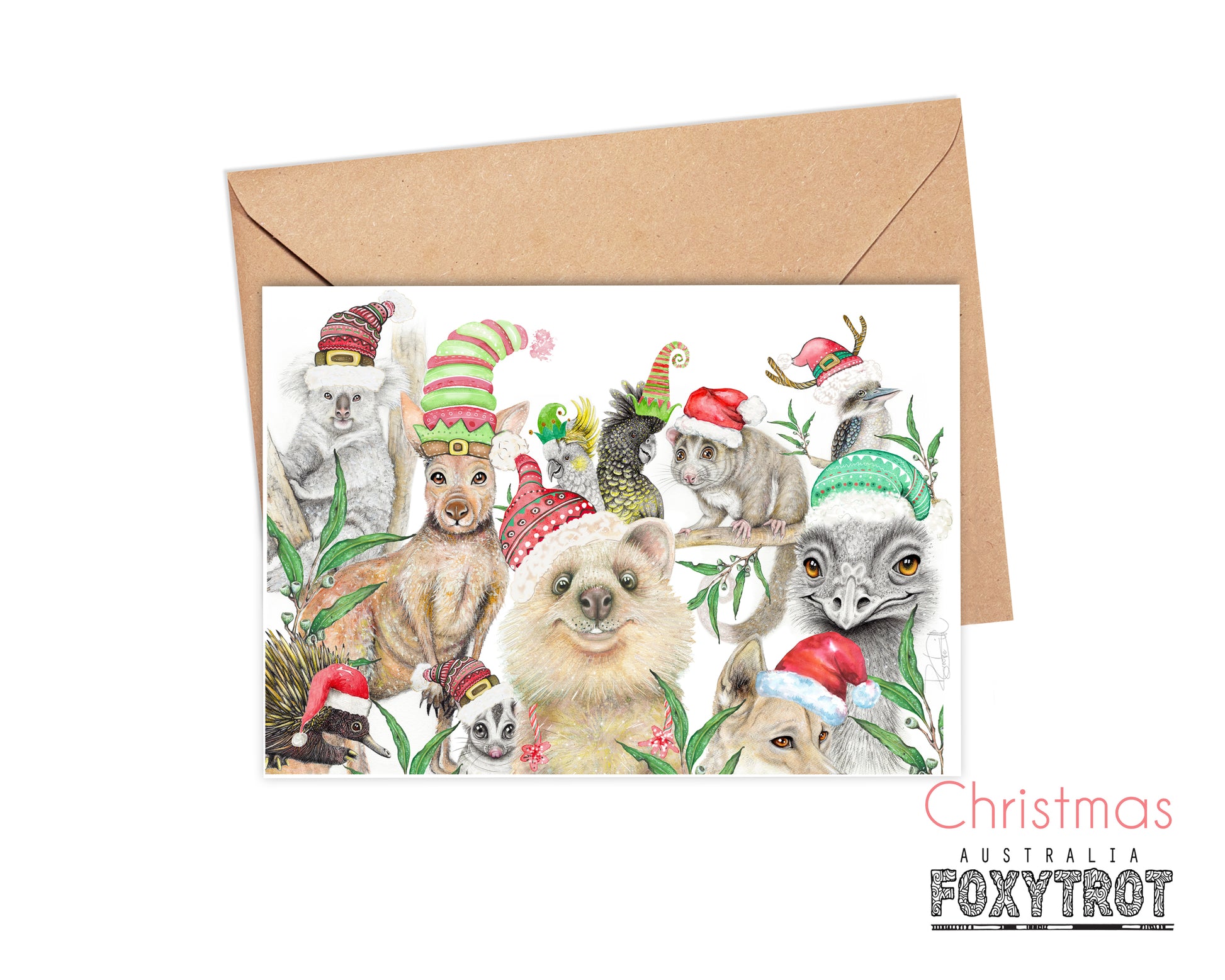 Welcome to my original Aussie animal Group photo illustration as a Christmas Card.