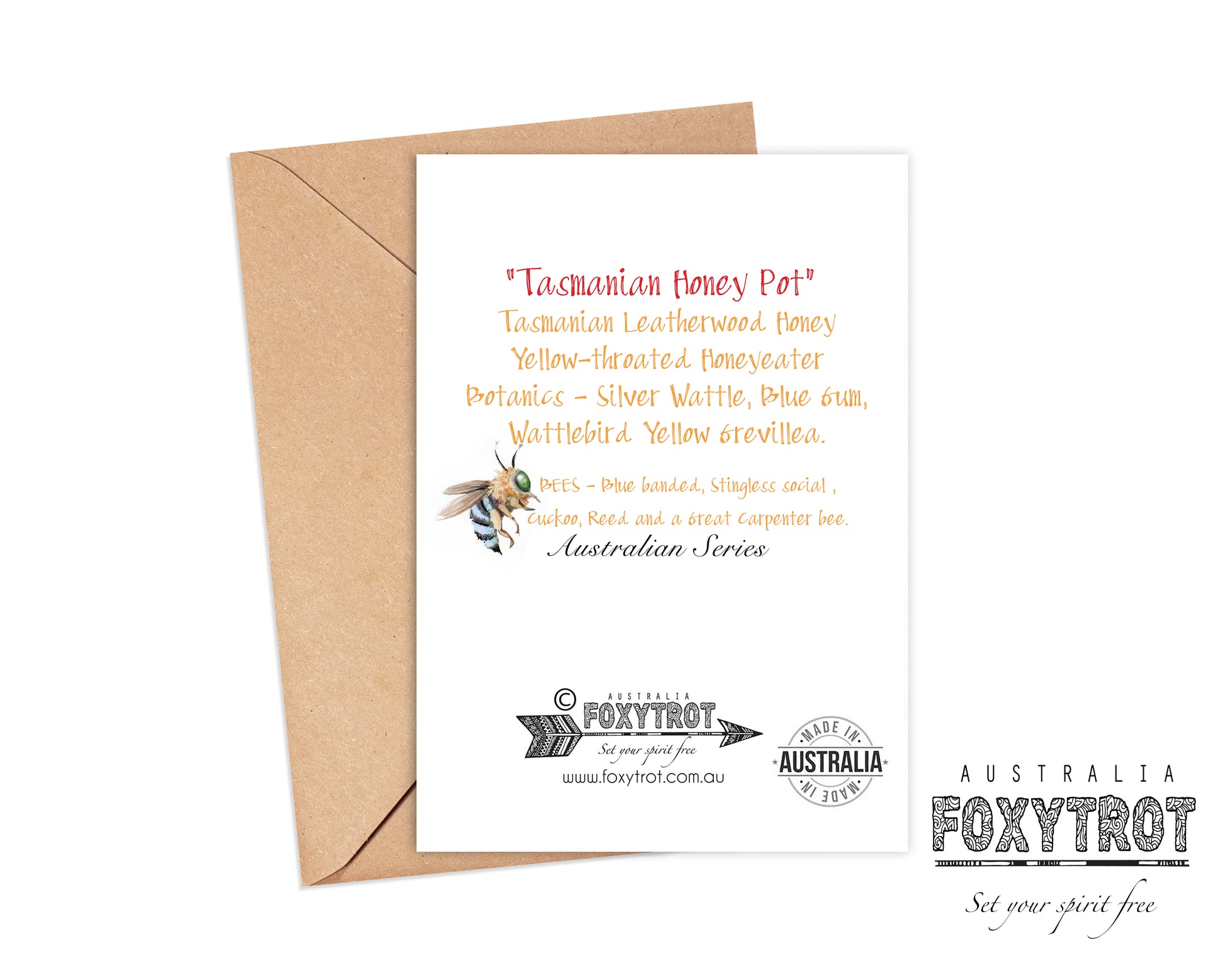 Tasmanian Leatherwood honey is naturally organic and collected from the bees that visit the western coast of Tasmania for the blooming flowers from the Leatherwood trees. The Yellow-throated Honeyeater is endemic to Tasmania. The Blue gum is Tasmania’s floral emblem. Silver Wattle (Acacia dealbata) is found throughout Tasmania and where there is honey, there are bees so keep an eye out for the five natives hovering around the wattle - Blue Banded Bee, Stingless Social Bee, Great Carpenter Bee, Cuckoo Bee and the Reed Bee.