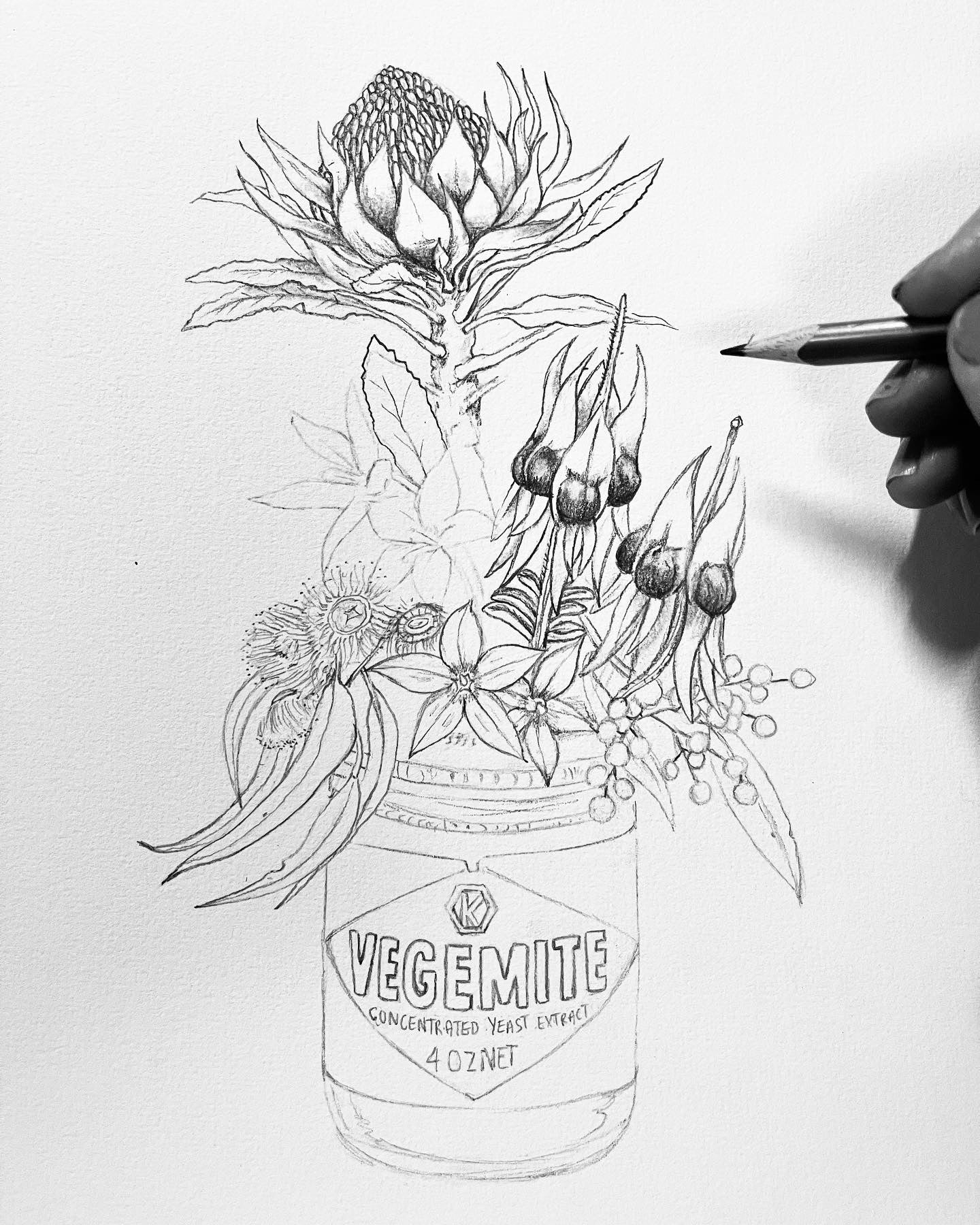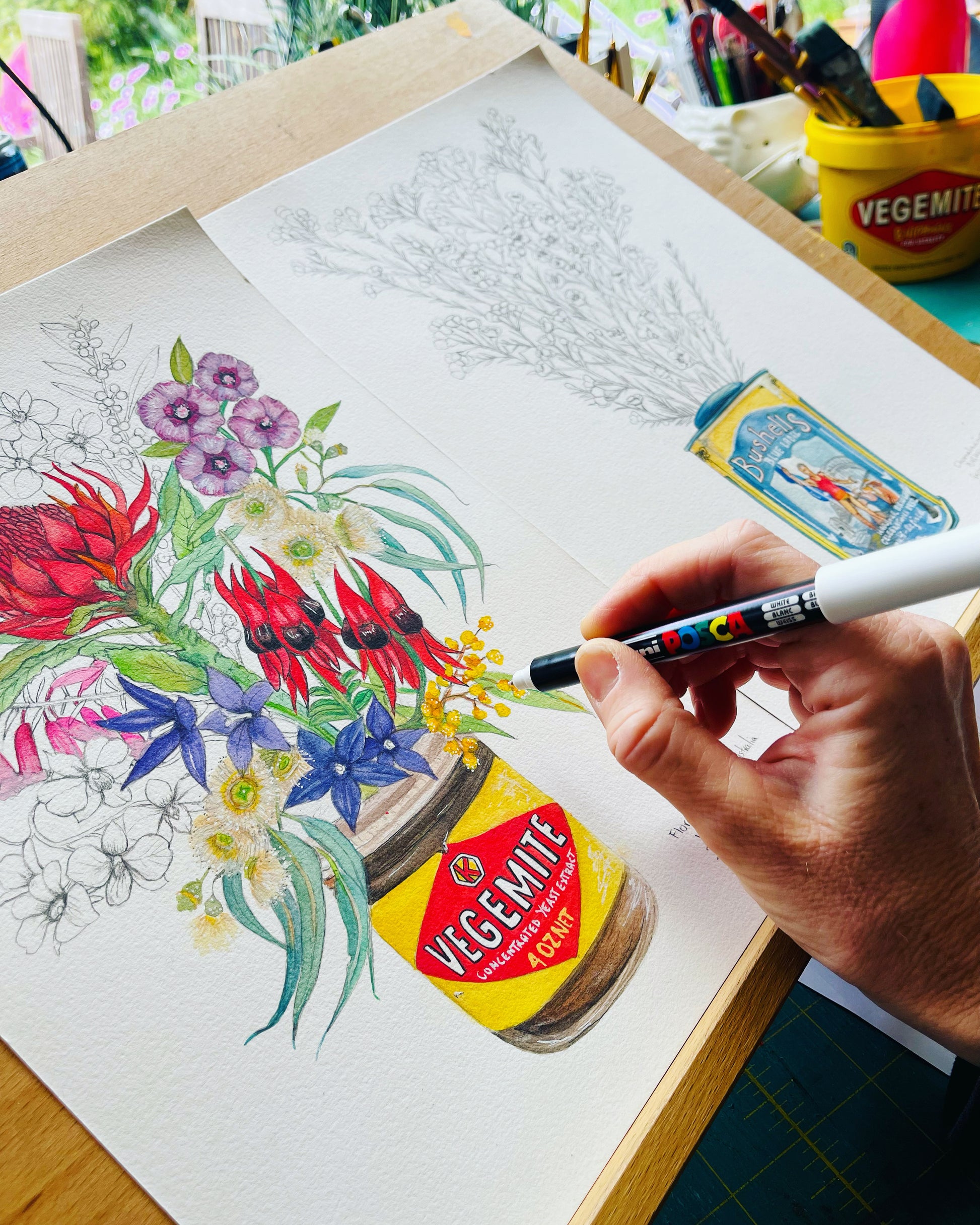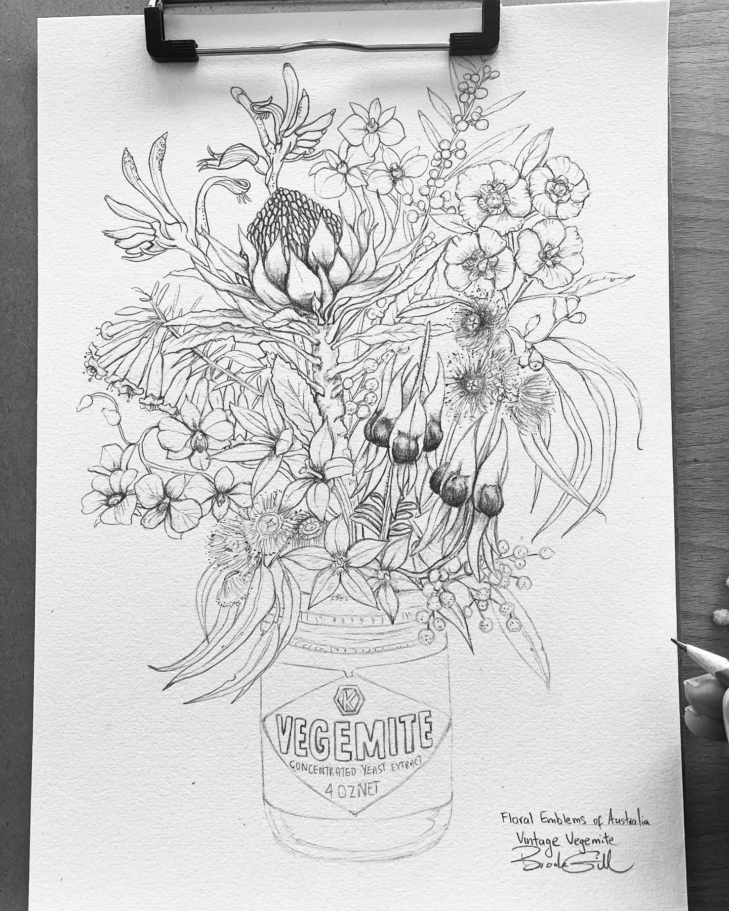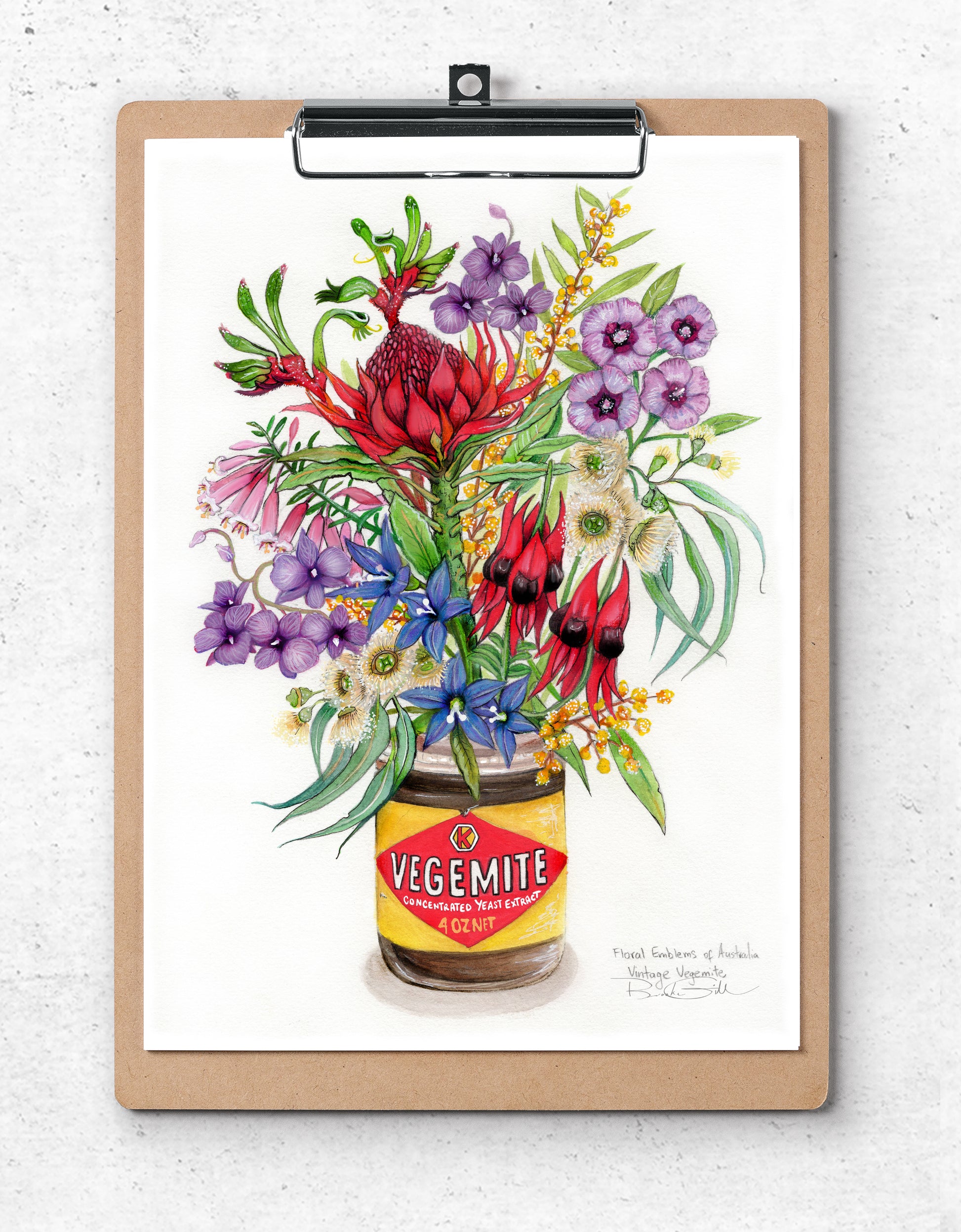 A beautiful bunch of Floral Emblems of AUSTRALIA in an iconic 1950's Vegemite jar. Symbolising and oozing Australian made.