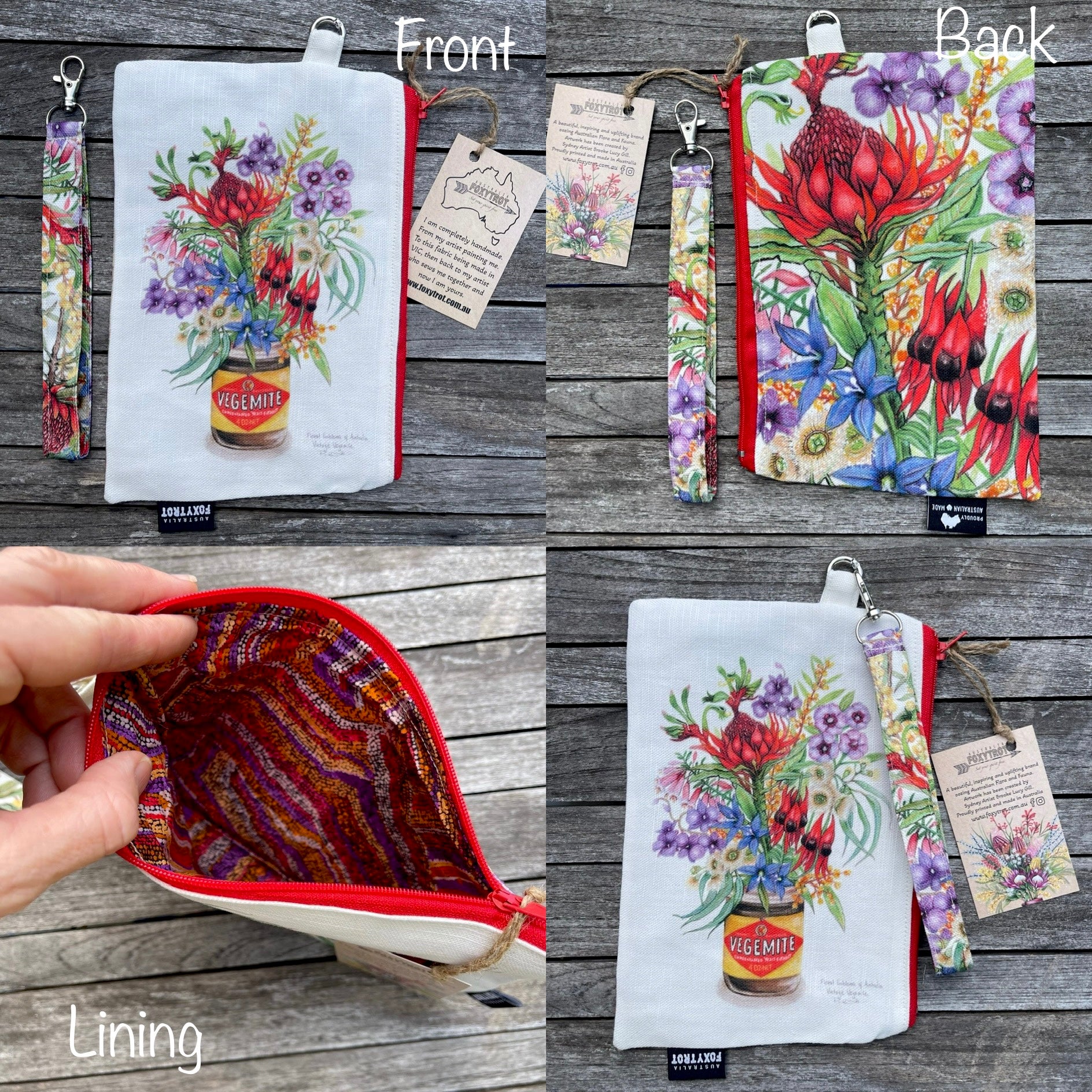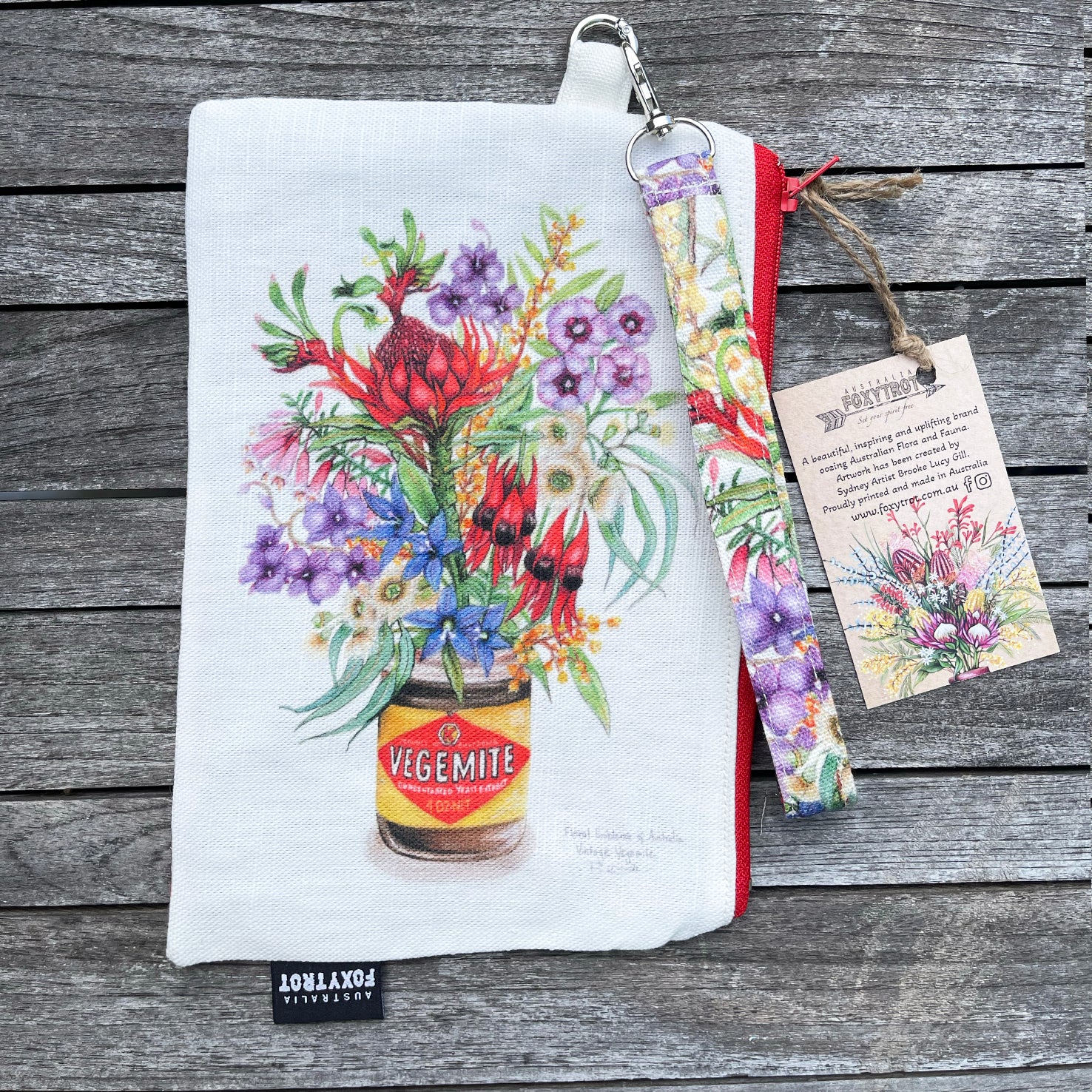 Artist Brooke Lucy Gill not only paints this beautiful watercolour Vegemite illustration of all the different floral state emblems. But she sends off to Victoria for her very own fabric to be made up. The fabric is then cut and sewn back in Brooke's Sydney studio, resulting in a one-of-a-kind Vintage Vegemite Clutch.